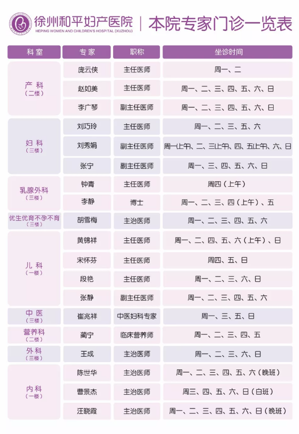 徐州和平妇产医院2019年8月19日—8月25日专家坐诊时间表,有需要的亲,赶紧预约哦~~