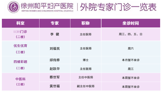 徐州和平妇产医院2020年3月2日—3月8日专家坐诊时间表,有需要的亲,赶紧预约哦~~